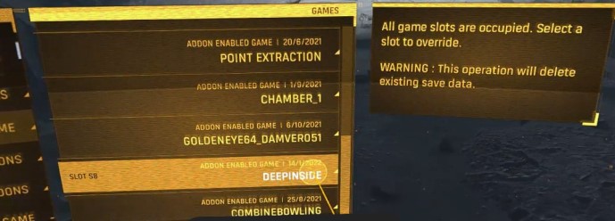 Step 5 - Select an empty slot, or if they're all full, select one of the used ones (you'll get the popup warning.)