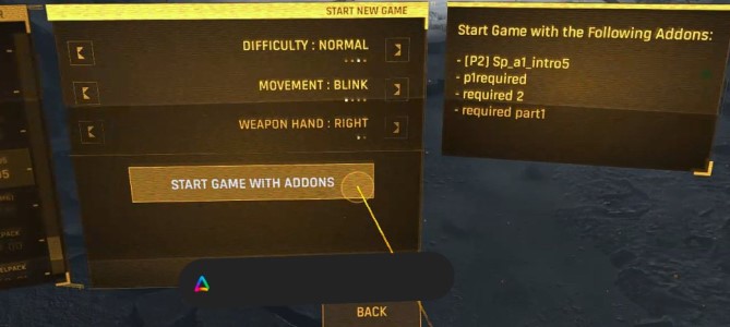 Step 2 - Launch Half Life Alyx and click ADDONS.